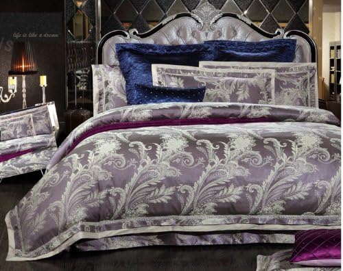 Amazon Com Queen King Size 6pcs Fashion Silver Purple Bedding Set Tribute Silk Satin Jacquard Duvet Covers Bed Set Bed Sheet King Kitchen Dining