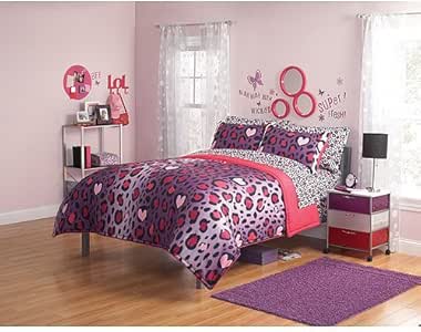 Amazon Com Keeco 5pc Girl Pink Purple Black Heart Love Leopard Cheetah Print Twin Comforter Set Home Kitchen