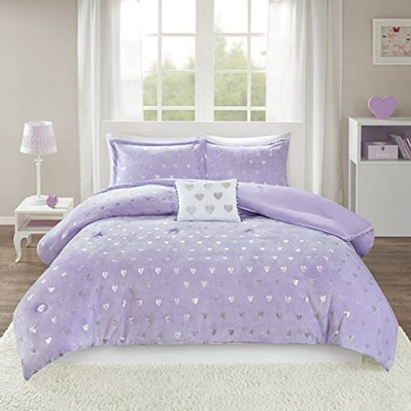 Mi Zone Rosalie Metallic Printed Plush Comforter Set Purple Silver Full Queen Walmart Canada