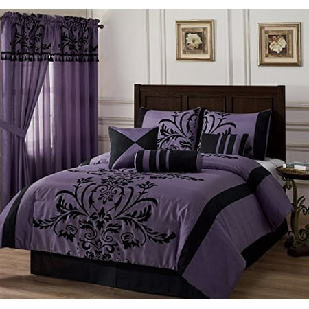 Chezmoi Collection Nobility Com 7 Piece Black Violet Flocked Floral Faux Silk Bedding Comforter Set King Walmart Canada