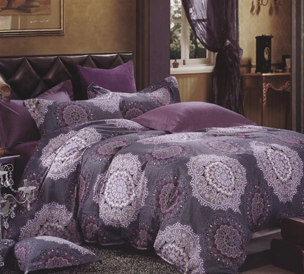 Lola Gray Purple 7 Pc Queen Comforter Set