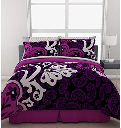 Amazon Com Black Purple Bold Teen Girls Full Size Comforter Set 8 Piece Bed In A Bag Home Kitchen