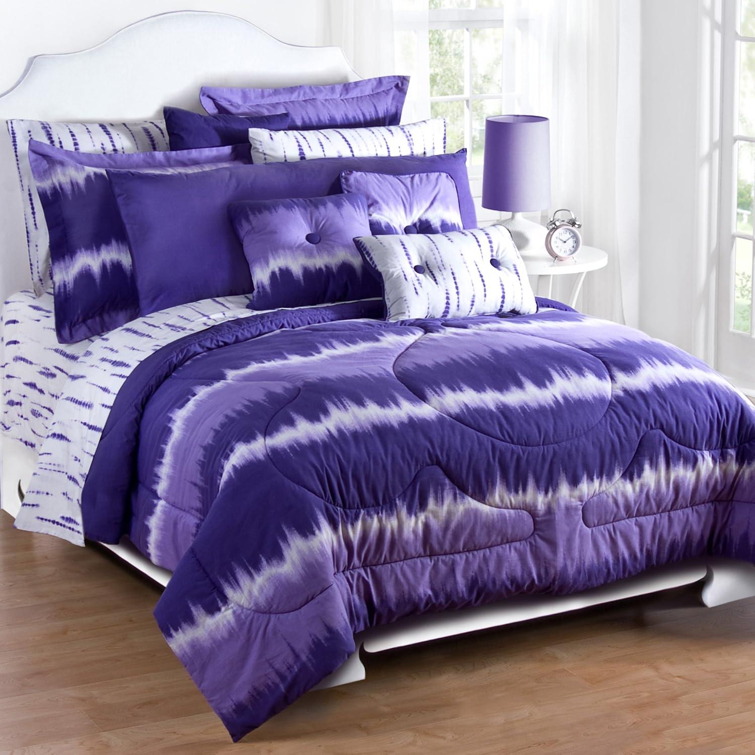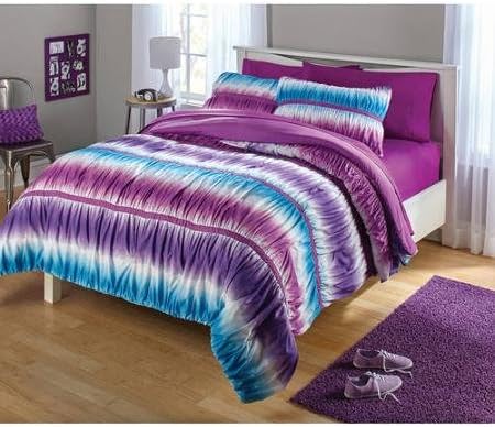 Amazon Com 7pc Girl Purple Tie Dye Full Comforter Set 7pc Bed In A Bag Home Kitchen Comforter Sets Complete Bedding Set Dorm Comforter Sets