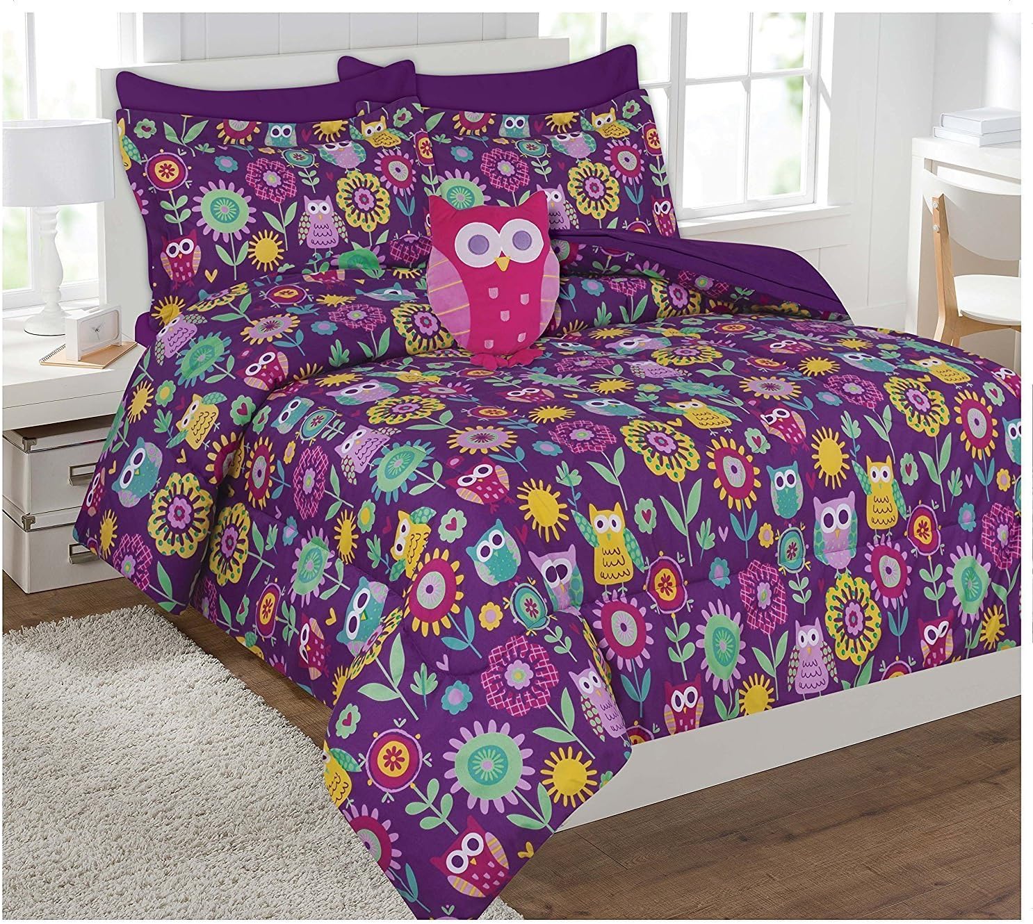 Amazon Com Fancy Linen Girls Comforter Set Owls Flowers Purple Teal Yellow Lavender New Owl Purple Twin Comforter Home Kitchen