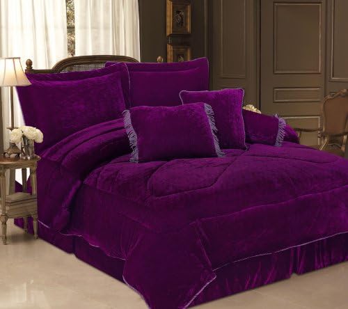 Amazon Com Kinglinen 7 Piece Full Purple Velvet Comforter Set Home Kitchen