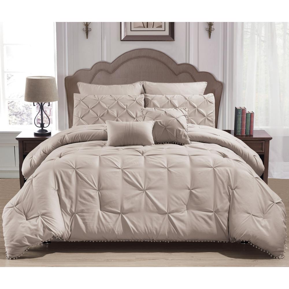 Kensie Esmalinda 7 Piece Taupe Queen Comforter Set Esmalinda 13412d 1 The Home Depot