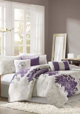 Madison Park Lola Gray Purple 7 Piece Queen Comforter Set 90 In X 90 In Belk