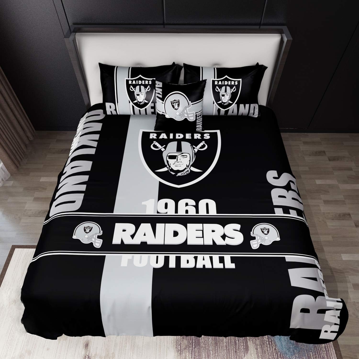 Oakland Raiders Bedding Setfull Queen Duvet Cover 4 Pieces 1 Duvet Cover 86 X 86 2 Pillow Shams 1 Throw Pillow Covers Amazon Ca Sports Outdoors