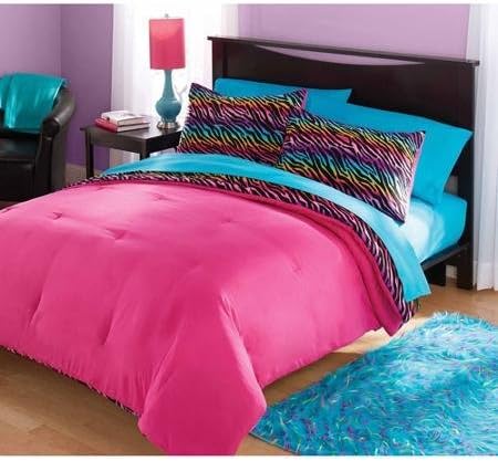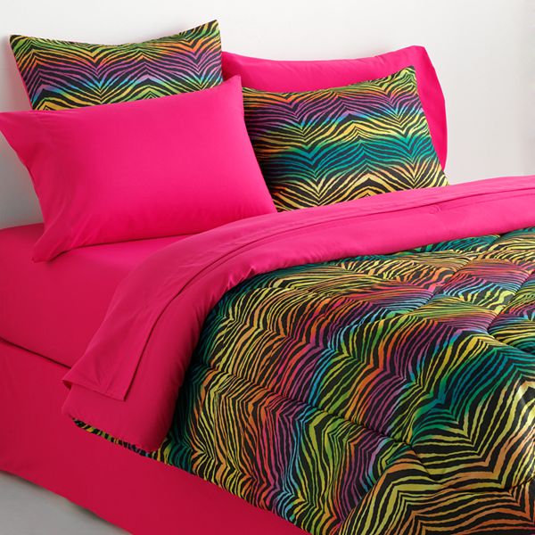 Your Zone Mink Rainbow Zebra Bedding Comforter Set Walmart Com Zebra Bedding Zebra Print Bedding Kids Comforter Sets