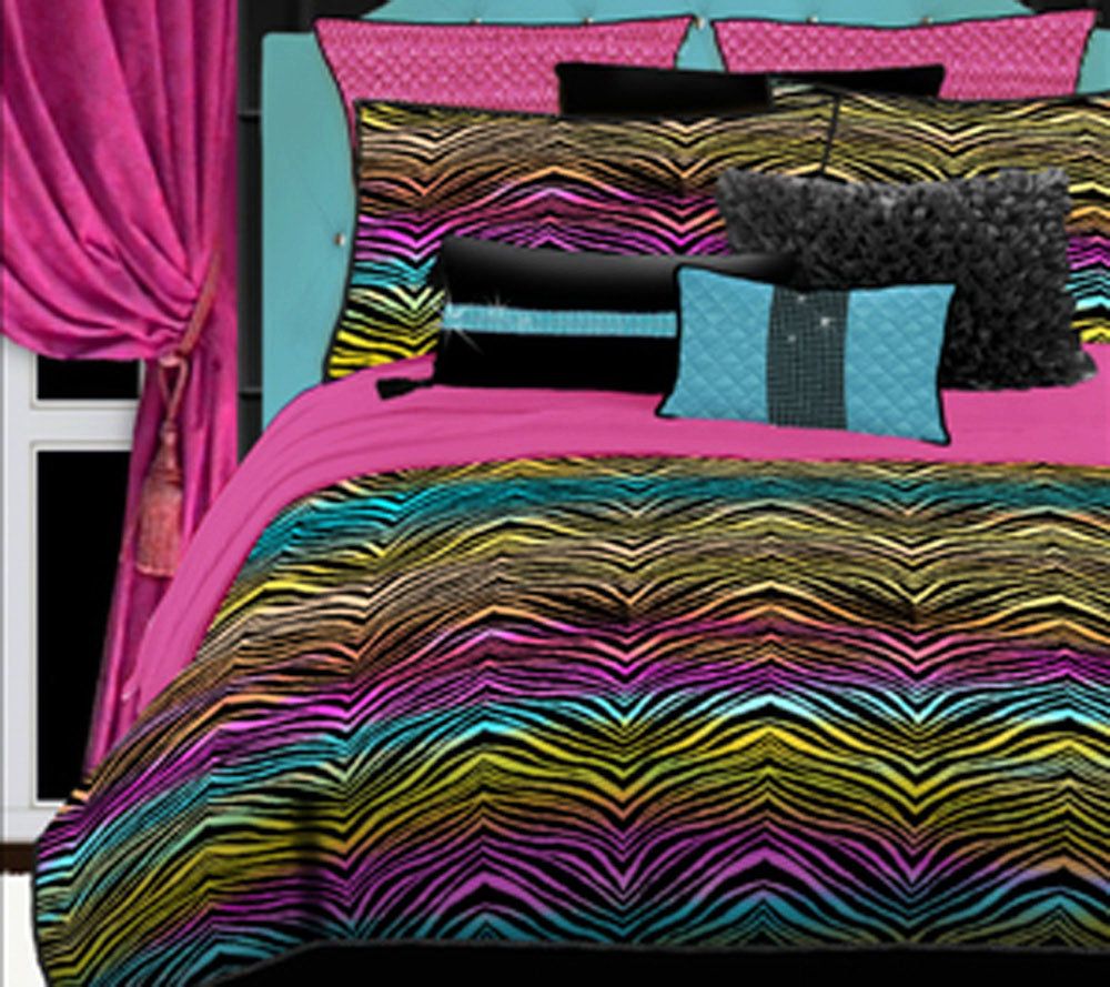 Amazon Com Your Zone Mink Rainbow Zebra Bedding Comforter Set Home Kitchen