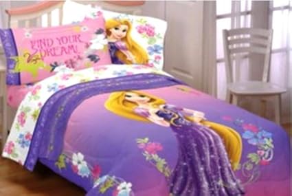 Amazon Com 4pc Disney S Tangled Twin Bedding Set Princess Rapunzel Magic Flowers Comforter And Sheet Set Home Kitchen