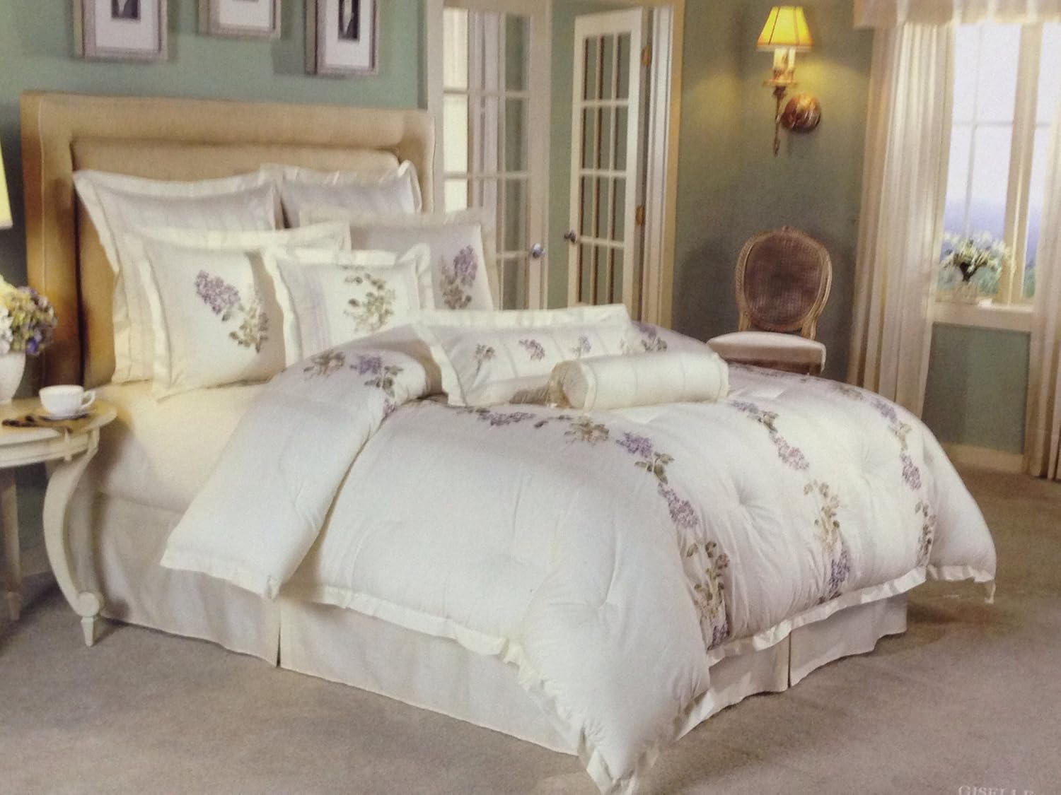 Amazon Com Raymond Waites Lilac Floral Giselle Embroidery 4pc Queen Comforter Set Home Kitchen
