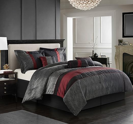 Amazon Com Empire Home 8 Piece Oversized Red Black Comforter Set Bedding With Sheet Set California King Home Kitchen