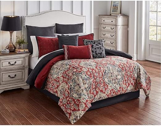 Amazon Com Riverbrook Home Polyester Comforter Set Queen 9 Piece Sadler Red Gray Home Kitchen