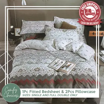 Sleep Essentials 3 In 1 Bedsheet Printed Set With Fitted Garter Sheet And Free 2 Pillowcase