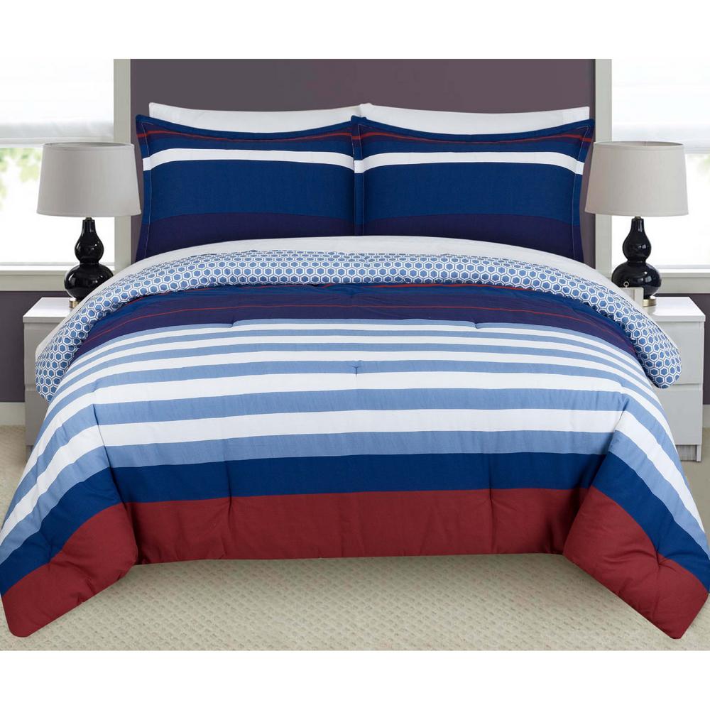 3 Pc Kids Teens Stripe Red Blue Twin Comforter Set With Fitted Sheet Walmart Com Walmart Com