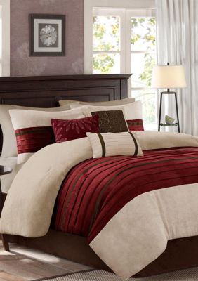 7 Pc Modern Hampton Comforter Set Black Burgundy Red Bed In A Bag King Size Bedding
