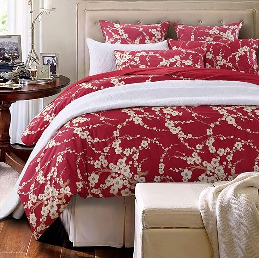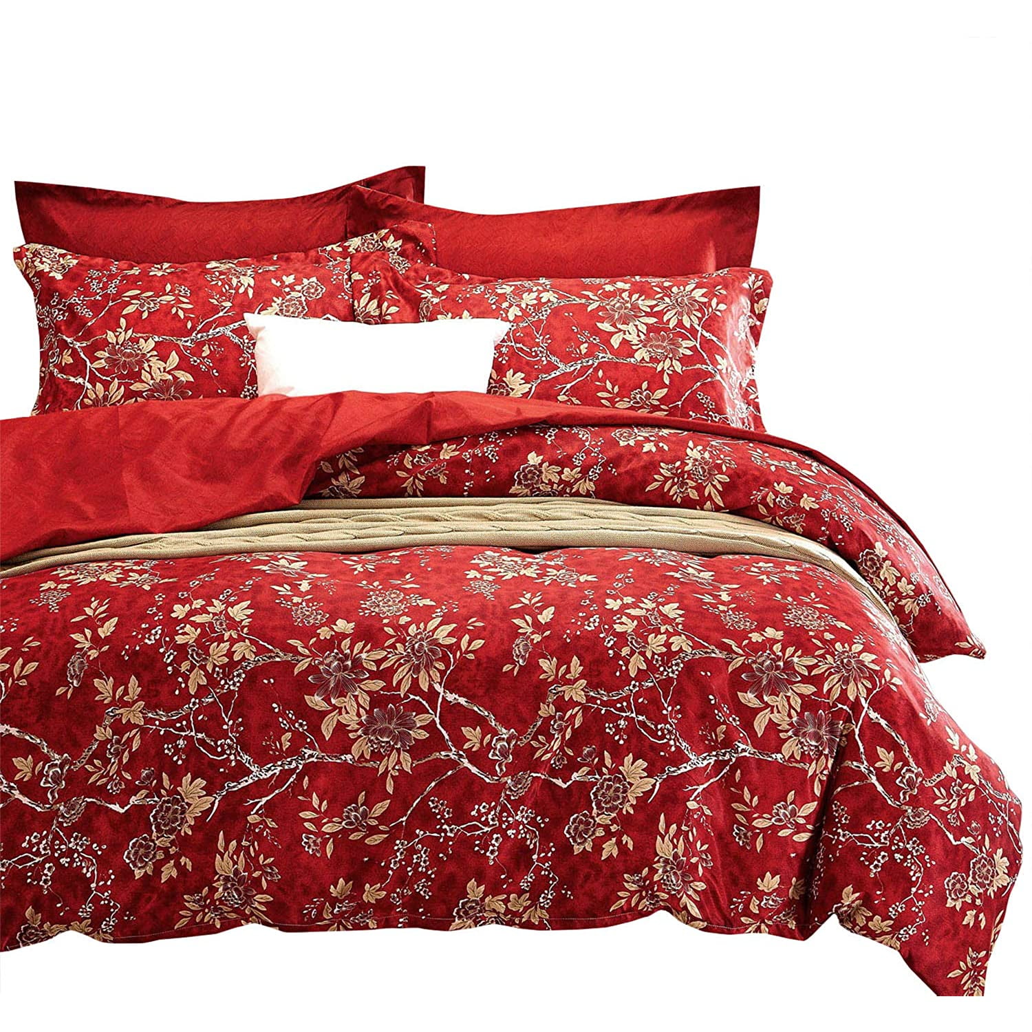 Amazon Com You Sa Red Floral Bedding Set Blossom Design Girls Duvet Cover Damask Bedding Full Red 2 Home Kitchen