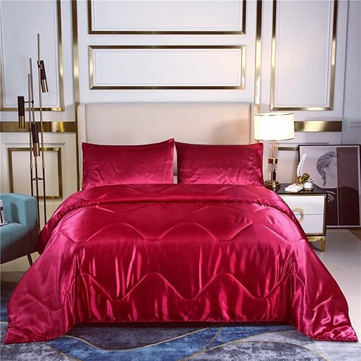 Luxury Silky Satin Comforter Set Soft Lightweight Quilted Bedding Sets With Matching Pillow Covers Red Twin Amazon Ca Home Kitchen