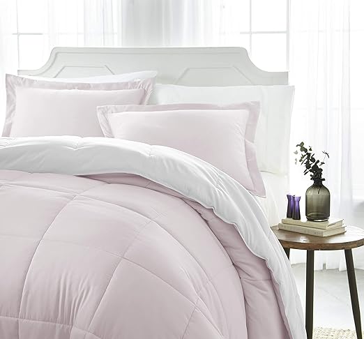 Amazon Com Ienjoy Home Collection Down Alternative Reversible Comforter Set Twin Blush Home Kitchen