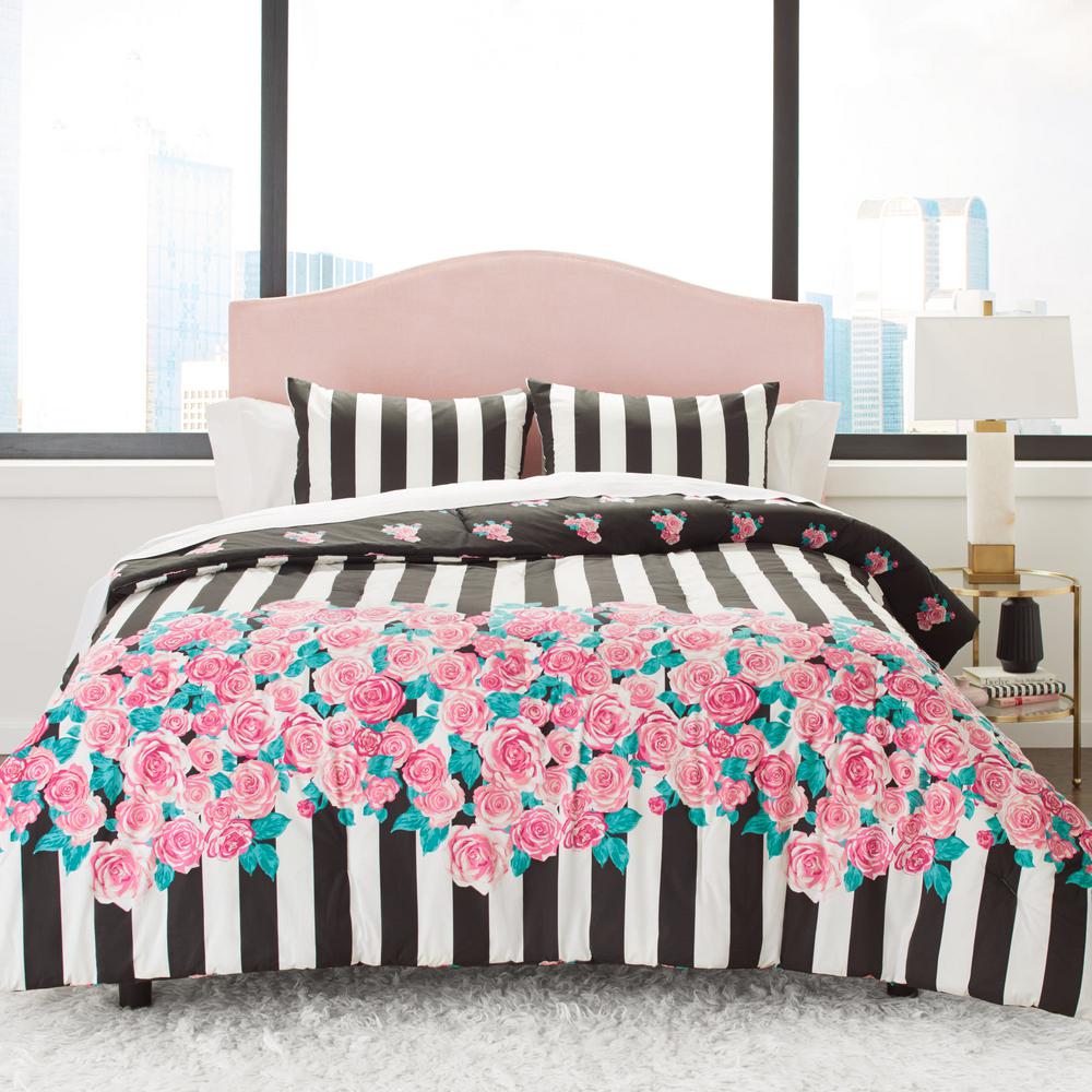 Betsey Johnson Romantic Roses Black 3 Piece Cotton King Comforter Sham Set Ushsa51119993 The Home Depot