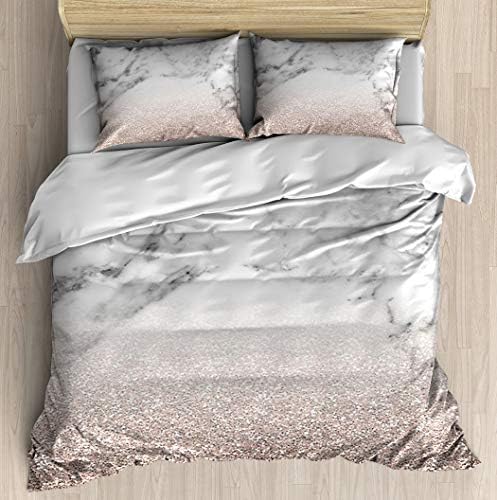 Amazon Com Rose Gold Glitter On Marble Duvet Cover Set Soft Comforter Cover Pillowcase Bed Set Unique Printed Floral Pattern Design Duvet Covers Blanket Cover Queen Full Size Home Kitchen