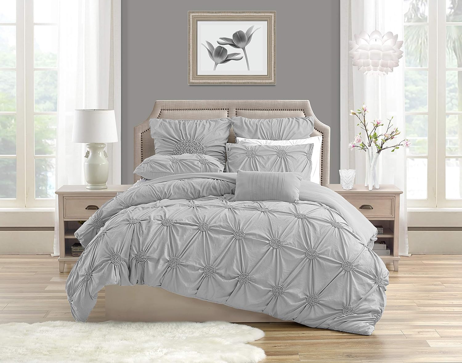 Amazon Com Swift Home Premium Romantic Bedding Set Collection 2 Piece Ruched Pinch Pleat Rosette Floral Pintuck Duvet Cover Sham Set Twin Twin Xl Light Grey Kitchen Dining