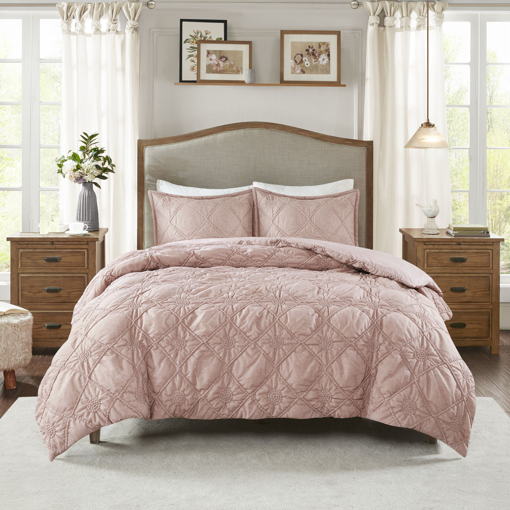 Amazon Com Swift Home Premium Romantic Bedding Set Collection 3 Piece Ruched Pinch Pleat Rosette Floral Pintuck Duvet Cover Sham Set King Cal King Blush Kitchen Dining