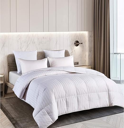 Amazon Com Royal Luxe Unisex Damask Stripe White Goose Down White Goose Feather Comforter Full Queen White Home Kitchen