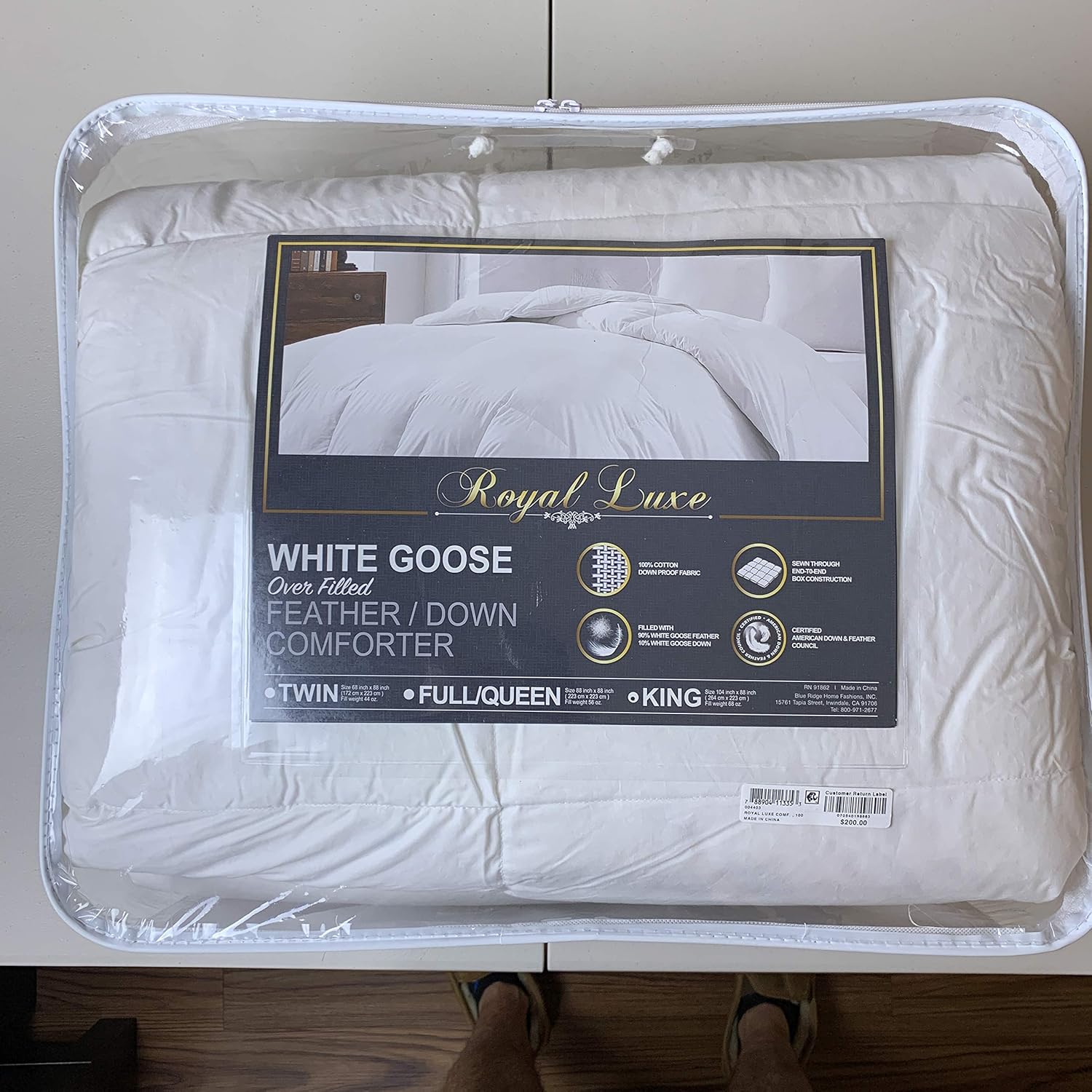 Royal Luxe White Goose Feather Down 240 Thread Count King Comforter White Home Kitchen Amazon Com