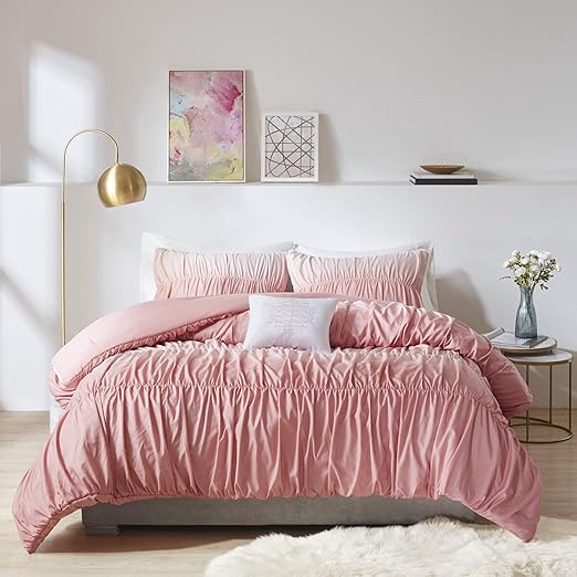 Amazon Com Intelligent Design Ellen 3 Piece Comforter Ruched Design With Ombre Fabric Embroidered Toss Pillow Modern Casual All Season Bedding Set With Matching Sham Twin Twin Xl Blush Home Kitchen