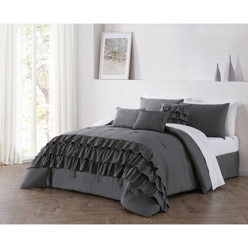 Addison House Reese 6 Piece Gray Queen Ruffle Comforter Set With Throw Pillows Res6csquenghdg The Home Depot