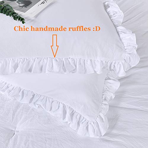 Amazon Com Lush Decor Belle 4 Piece Ruffled Shabby Chic White Comforter Set With Bed Skirt And 2 Pillow Shams Queen Comforter Set Home Kitchen