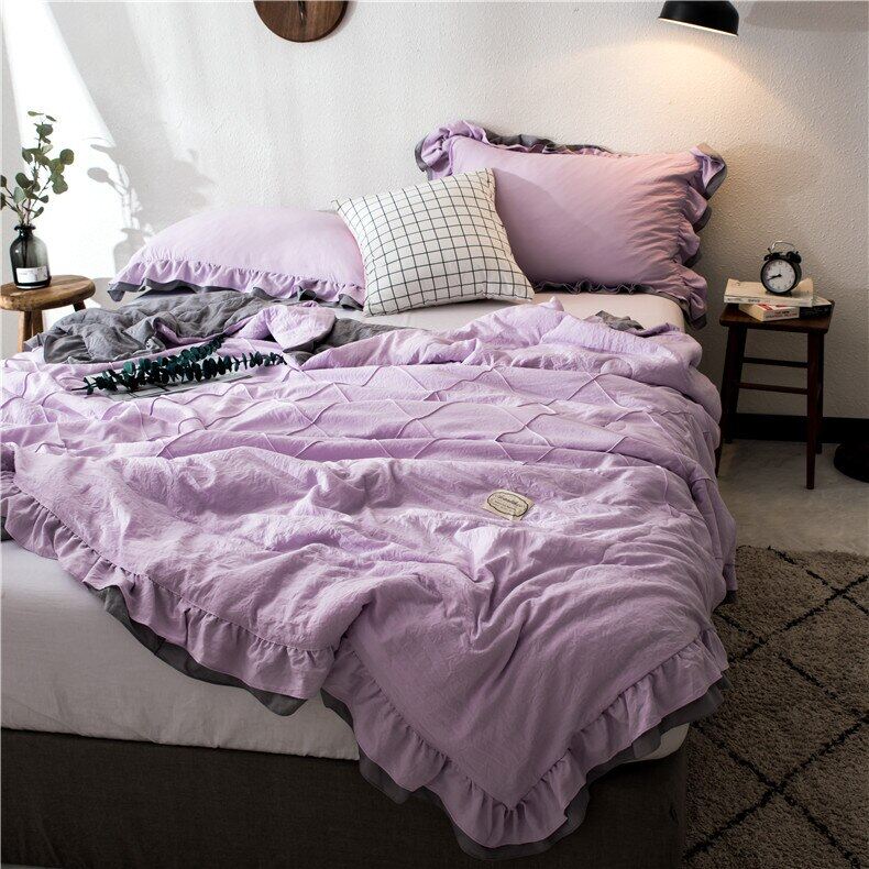 2019 Ruffles Plaid Summer Quilt Pillowcase Bedspread Blanket Comforter Bed Cover Quilting Home Textiles Suitable Thin Coverlet Lazada Ph