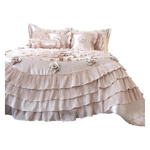 Frosted Fields Faux Satin Luxury Ruffle Comforter Set California King Traditional Comforters And Comforter Sets By Tache Home Fashion