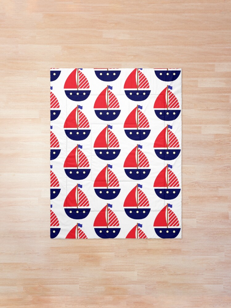 Blue And Red Nautical Sailboat Comforter By Vangelys Redbubble