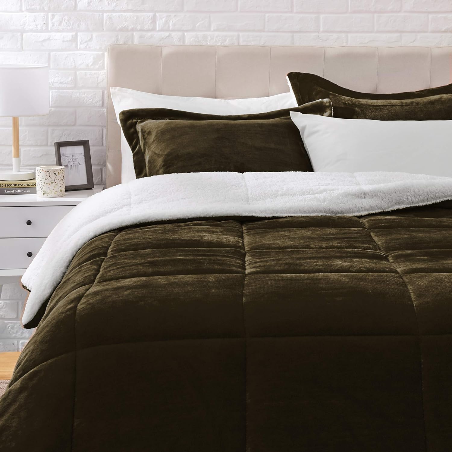Amazon Com Amazonbasics Ultra Soft Micromink Sherpa Comforter Bed Set Full Or Queen Chocolate 3 Piece Home Kitchen