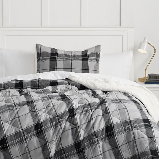 Jones Plaid Sherpa Boys Comforter Sham Sale Pottery Barn Teen