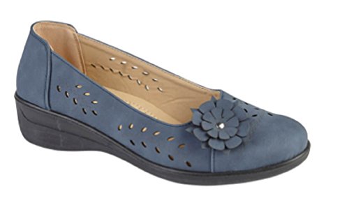 Shoe Tree Comfort Women S Ladies Delia Medium Wedge Heel Comfort Casual Slip On Shoe In Black Or Navy Blue Size 3 4 5 6 7 8 Amazon Co Uk Shoes Bags