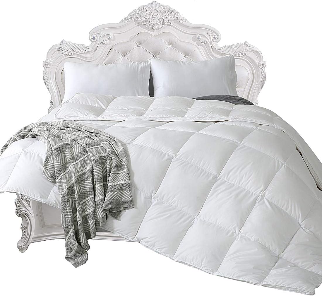 Amazon Com Fairyland Luxurious Siberian Goose Down Comforter Queen Size All Season Ultra Soft 1800 Series Premium Microfiber Shell 750 Fill Power 42 Oz Fill Weight Box Stitched White Solid Home Kitchen