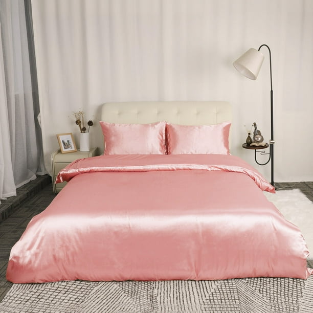 Satin Silk Comforter Duvet Cover Pillowcases Bedding Set Pink Queen Walmart Com Walmart Com