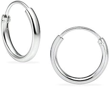 Amazon Com 925 Sterling Silver Comfort Fit Tiny 10mm Small Endless Round Hoop Earrings For Cartilage Nose And Lips 3 8 Inch Clothing