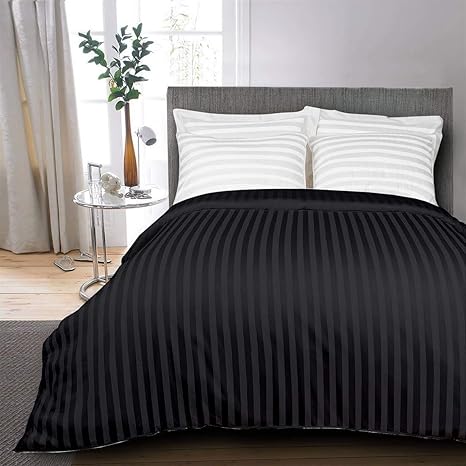 Buy Cloth Fusion Amor Satin Striped 210 Tc Cotton Comforter Duvet Quilt Cover For Single Size Bed 60x100 Inches Black Online At Low Prices In India Amazon In