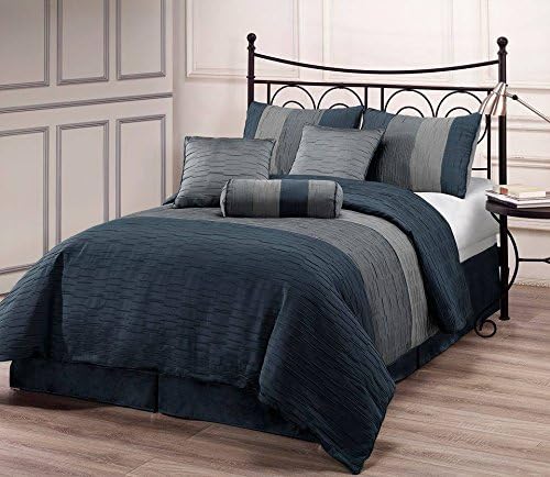 Amazon Com Zadooth Full 7 Piece Comforter Set Slate Blue Charcoal Grey Silver Stripe Bedding One Day Sale Home Kitchen