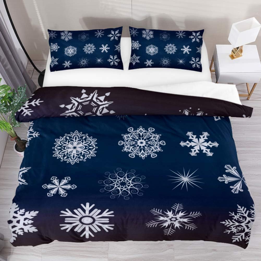 Amazon Com Snowflake Bedding 3 Piece Queen Bed Sheets Set Comforter Bedding Set Microfiber Duvet Cover Set Pattern Of Winter For Any Bed Room Or Guest Room Home Kitchen