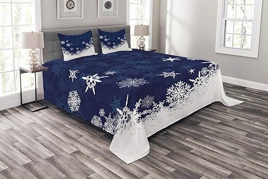 Amazon Com Lunarable Snowflake Bedspread Winter Theme Christmas Illustration Cold Weather Season Inspired Celebration Decorative Quilted 3 Piece Coverlet Set With 2 Pillow Shams Queen Size Indigo White Home Kitchen