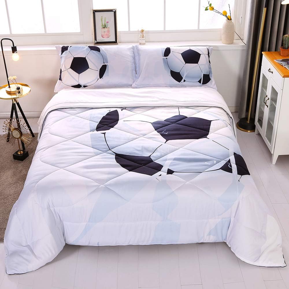 Amazon Com Enjohos Special 3d Soccer Bedding Queen Size Football Comforter Set For Kids Cool Duvet Lightweight Bedroom Decor Bed Set 3pcs 1 Comforter And 2 Pillow Shams Home Kitchen