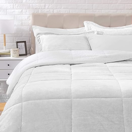 Amazon Com Amazonbasics Ultra Soft Micromink Sherpa Comforter Bed Set Full Or Queen Gray 3 Piece Home Kitchen