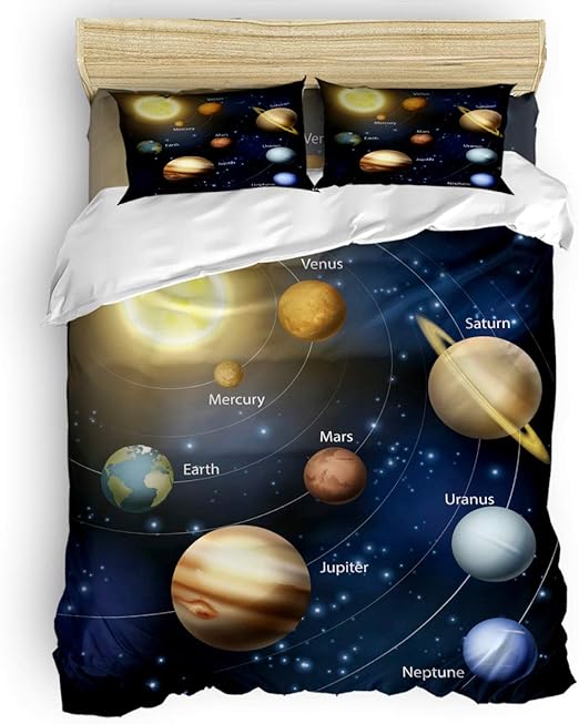 Amazon Com Duvet Cover Set Twin Size Solar System 4 Piece Bedding Sets Decorative For Childrens Kids Teens Adults 1 Bed Sheet 1 Comforter Cover With 2 Pillow Case Space Themed Home Kitchen