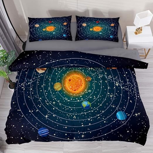 Amazon Com Lvshen Solar System 3 Pieces Printed Sheets Bedding Sets Twin Size Bed Coverlet Duvet Cover Set With 2 Pillow Cases Shams For Teen Boys Girls Home Kitchen